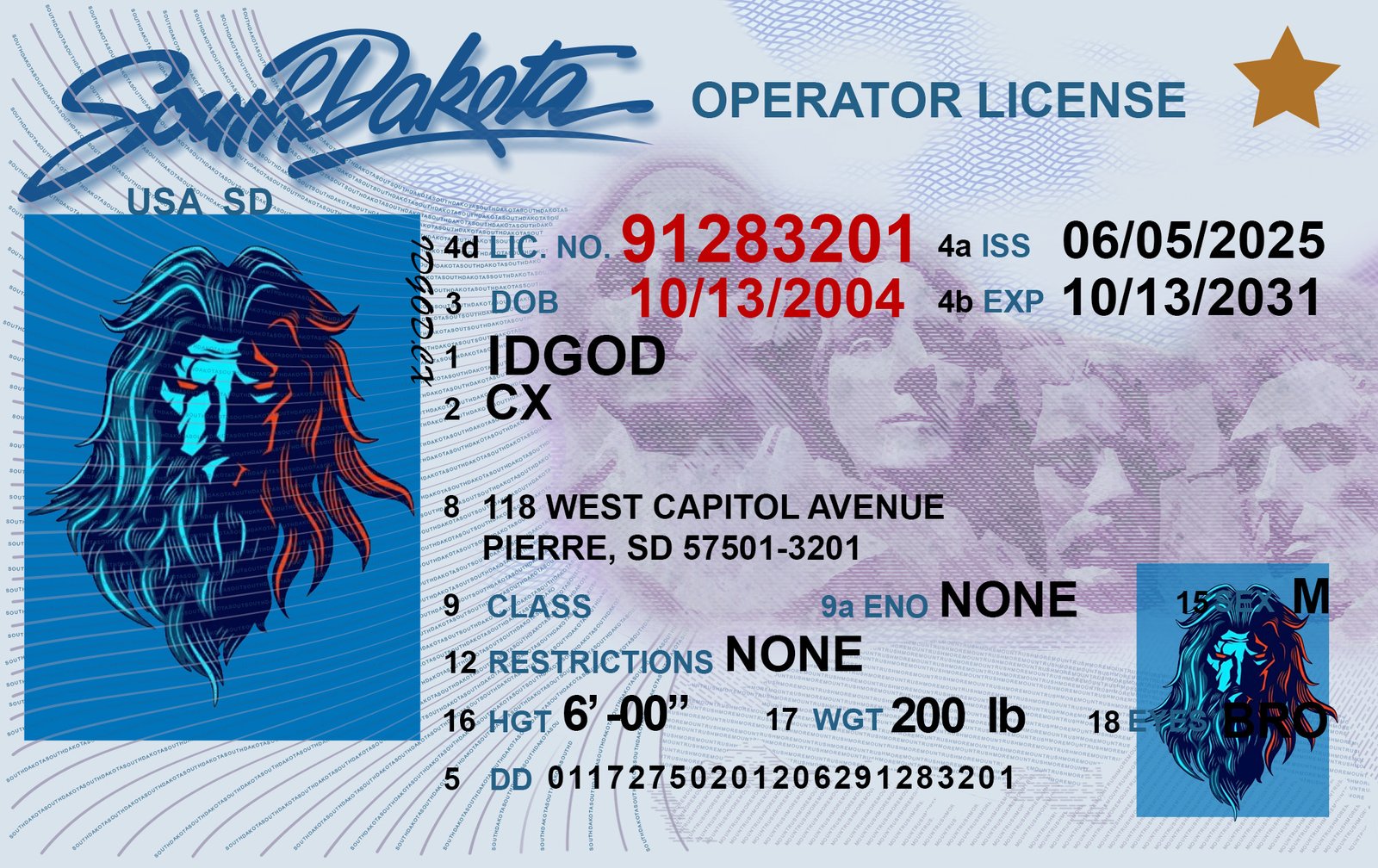 South Dakota has invested heavily in identity security, implementing a driver’s license system that integrates multiple layers of physical and digital protection. Modern credentials incorporate polycarbonate construction, laser-engraved personal data, multiple portrait images, holographic and optically variable elements, UV-reactive imagery, microprinting, barcoded encryption, and biometric verification systems. These features are intended not only to prevent counterfeiting and alteration but also to ensure long-term durability in a state known for extreme temperature variations and rugged outdoor lifestyles.